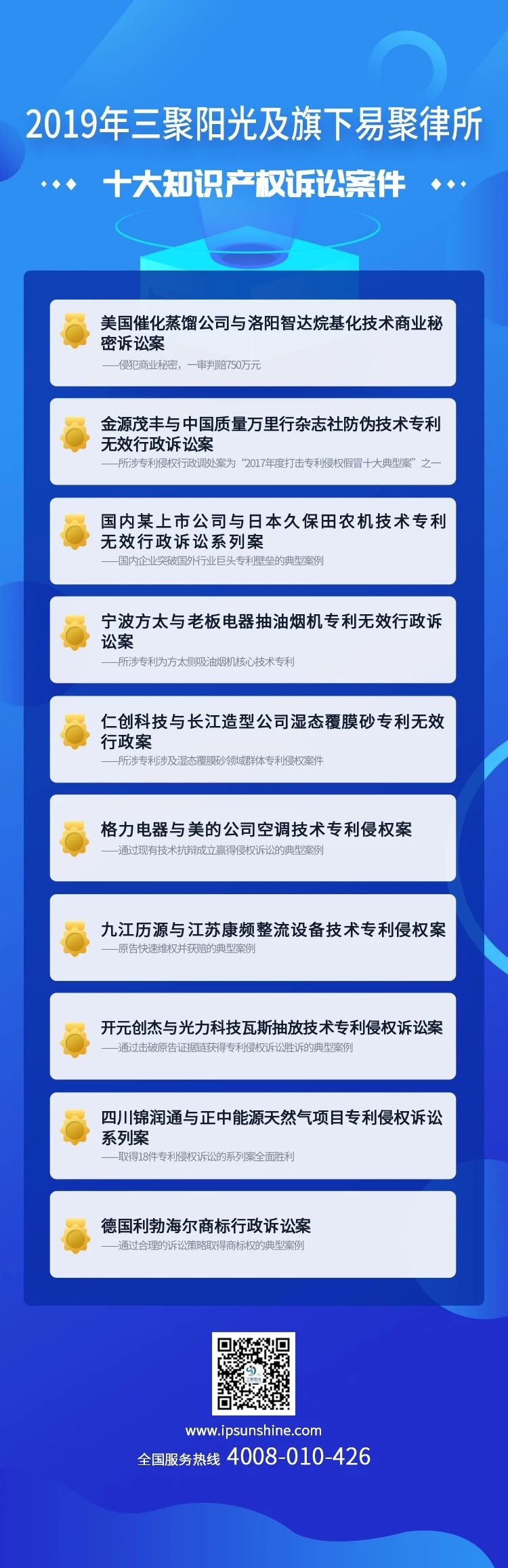 2019年三聚陽光及旗下易聚律所十大知識產(chǎn)權(quán)訴訟案件