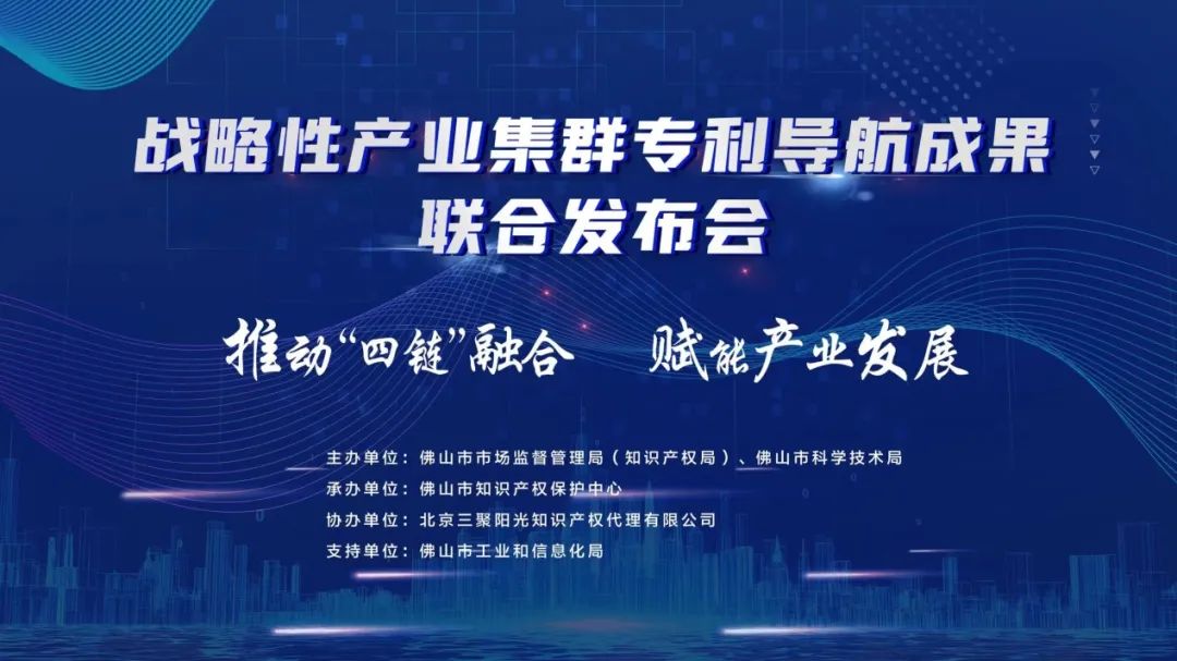 近日,佛山市戰(zhàn)略性產(chǎn)業(yè)集群專利導(dǎo)航成果聯(lián)合發(fā)布會(huì)成功舉辦,這標(biāo)志著由三聚陽(yáng)光集團(tuán)承接的精密儀器設(shè)備、前沿新材料、生物醫(yī)藥與健康三大戰(zhàn)略性產(chǎn)業(yè)集群專利導(dǎo)航成果正式對(duì)外發(fā)布。佛山市市場(chǎng)監(jiān)督管理局、科技局以及佛山市知識(shí)產(chǎn)權(quán)保護(hù)中心以及三聚陽(yáng)光集團(tuán)等有關(guān)單位共同主辦了這次發(fā)布會(huì)。