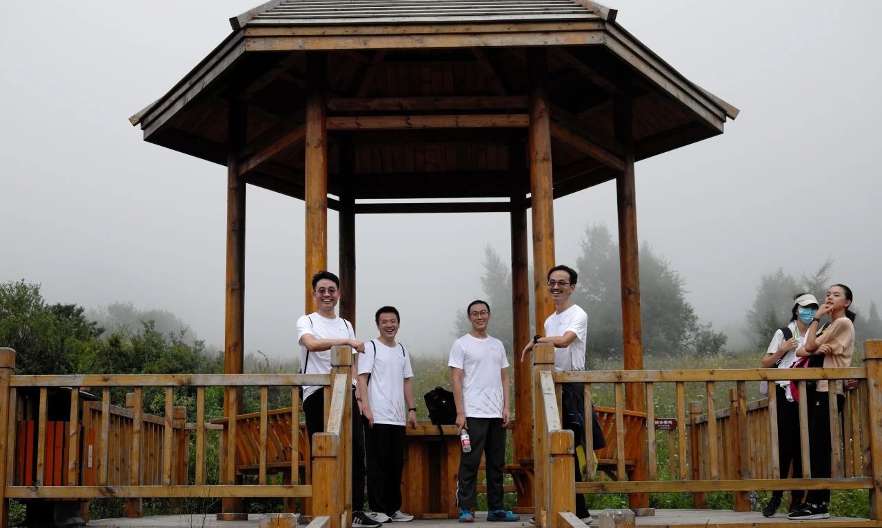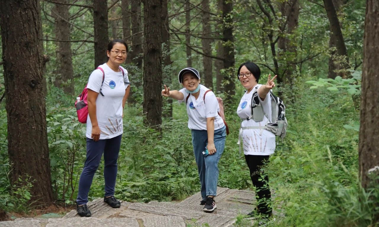百花山山路十分陡峭,石階全長3.8公里,曲折蜿蜒,垂直海拔高度差更是接近800米,爬山阻力不小。同事們發(fā)揮團結友愛的協(xié)作精神,相互鼓勵,一步一步向山頂前進,在歷經(jīng)1-2小時的堅持后,陸續(xù)登頂。眼前的廣闊天地,伴隨著涼爽的清風,令人心曠神怡,大家紛紛拍照留念,記錄下這一刻的喜悅。