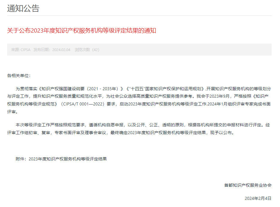 近日,首都知識產(chǎn)權(quán)服務(wù)業(yè)協(xié)會公布了2023年度知識產(chǎn)權(quán)服務(wù)機(jī)構(gòu)等級評定結(jié)果,三聚陽光以卓越的服務(wù)質(zhì)量和行業(yè)影響力,榮獲最高榮譽(yù)——五星級知識產(chǎn)權(quán)服務(wù)機(jī)構(gòu)評定。這一殊榮不僅是對三聚陽光團(tuán)隊(duì)專業(yè)能力的認(rèn)可,也是對我司在知識產(chǎn)權(quán)服務(wù)領(lǐng)域持續(xù)創(chuàng)新和貢獻(xiàn)的肯定。