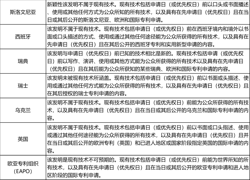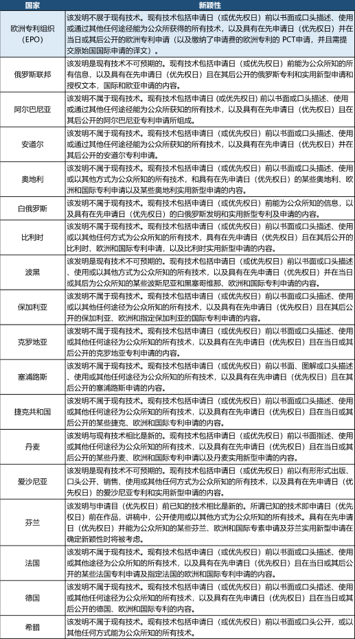 附:各國對“新穎性”的定義(歐洲篇)